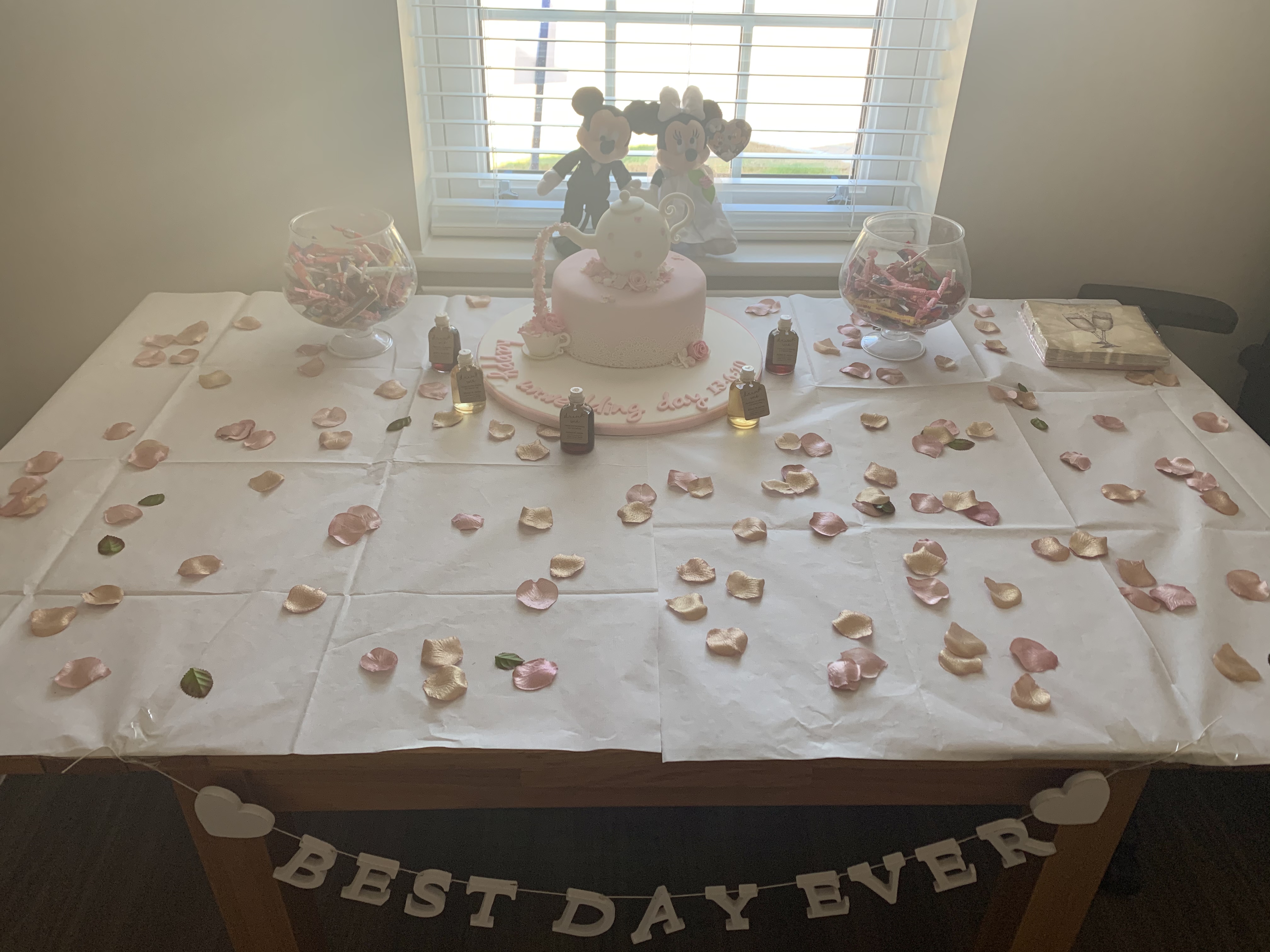 One of our couples, celebrated their original wedding day at home with an ‘un-wedding’ Disney theme.