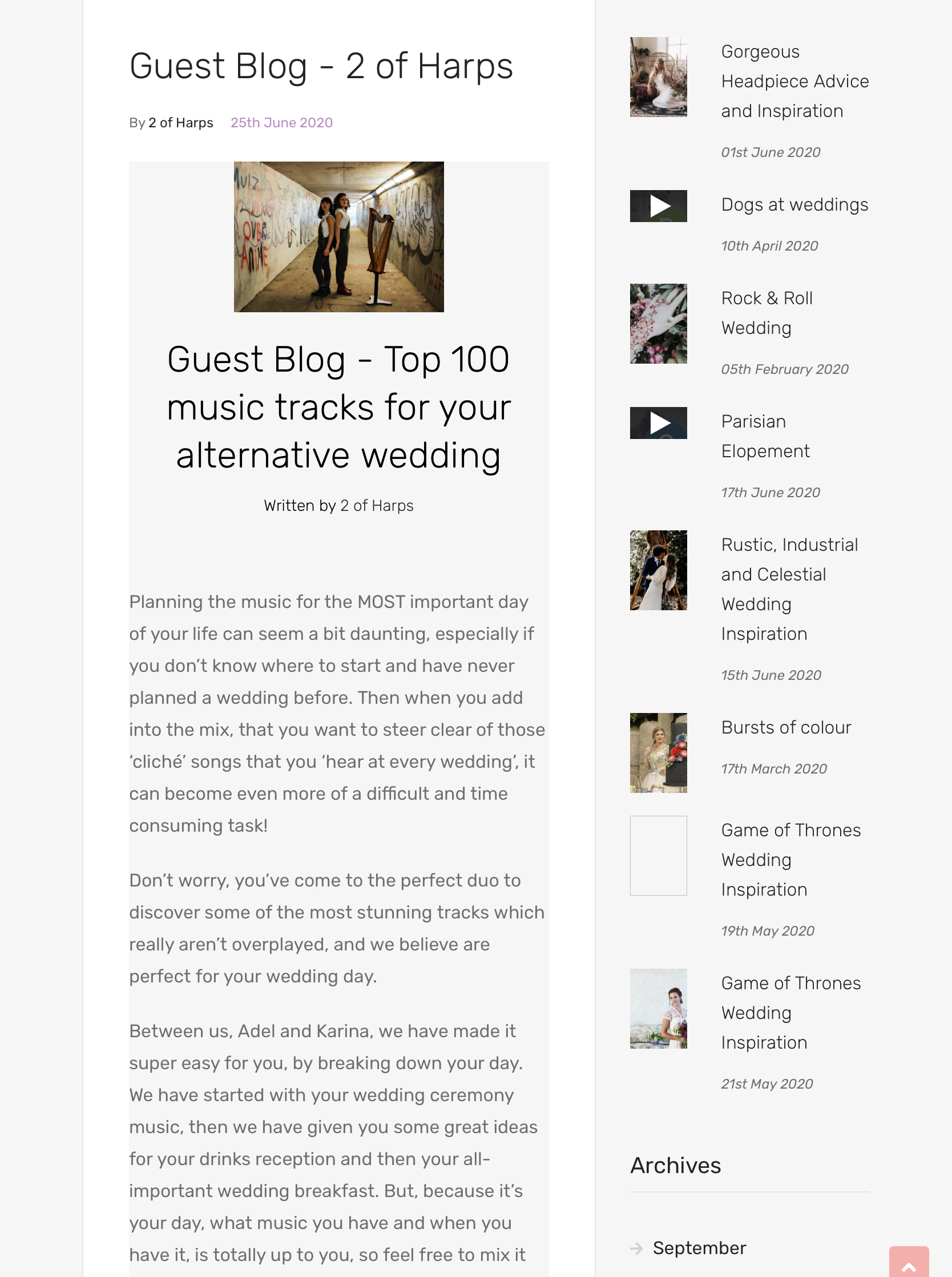 UncategorizedTop 100 music tracks for your alternative wedding June 26, 2020June 26, 2020 Adel Click HERE to read our fabulous Guest Blog for Pretty and Punk. Share this: Click to share on X (Opens in new window) X Click to share on Facebook (Opens in new window) Facebook Like Loading... Related