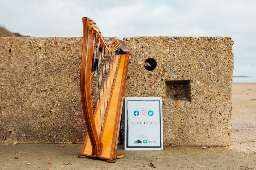 These harps are ideal for intimate events, outdoors (because they are so transportable and versatile) and at large scale events when amplified.